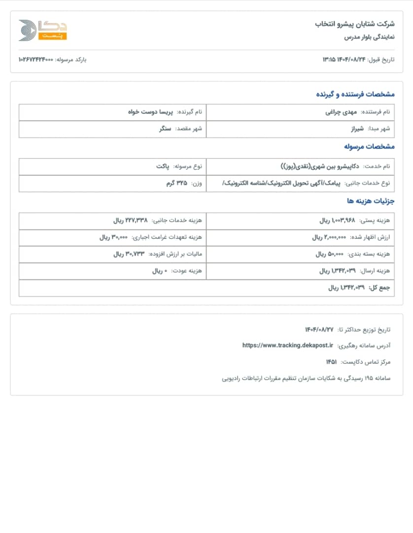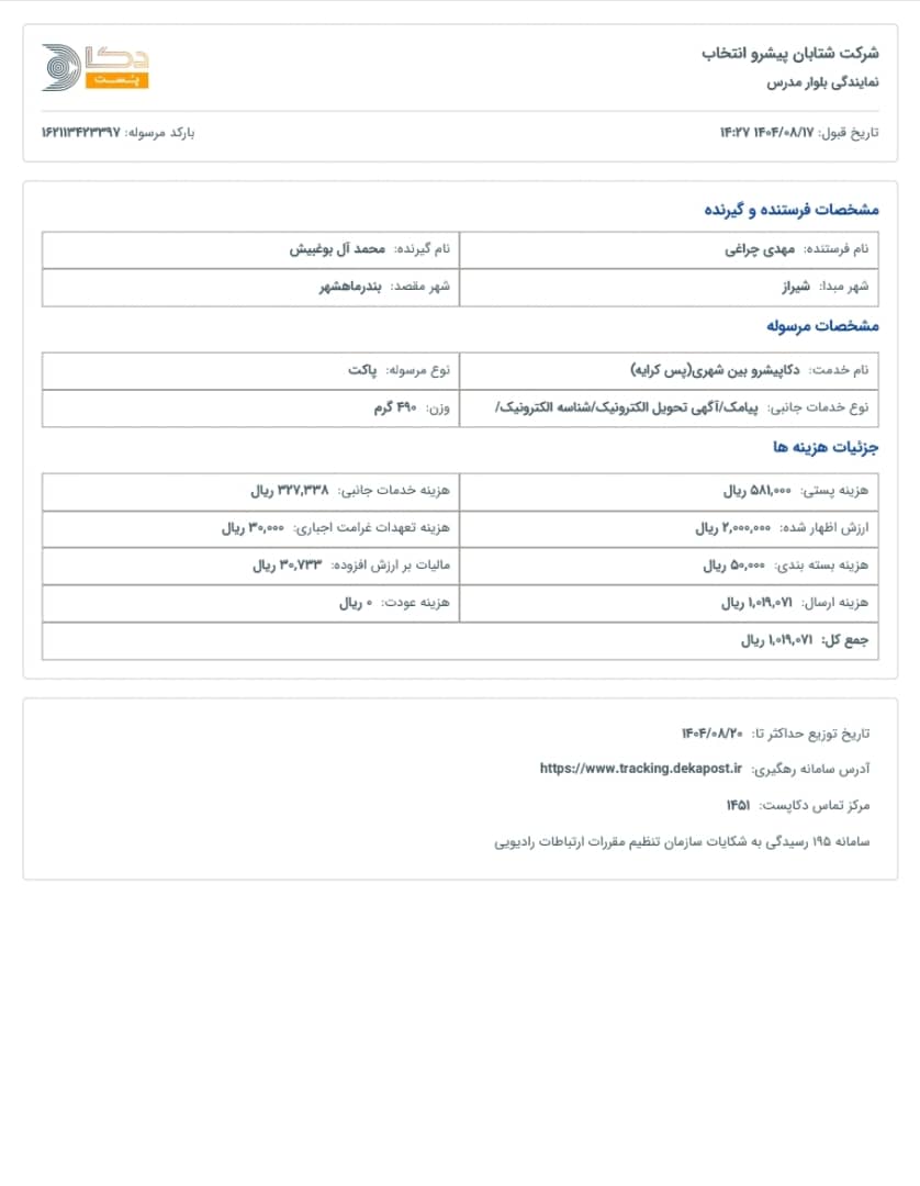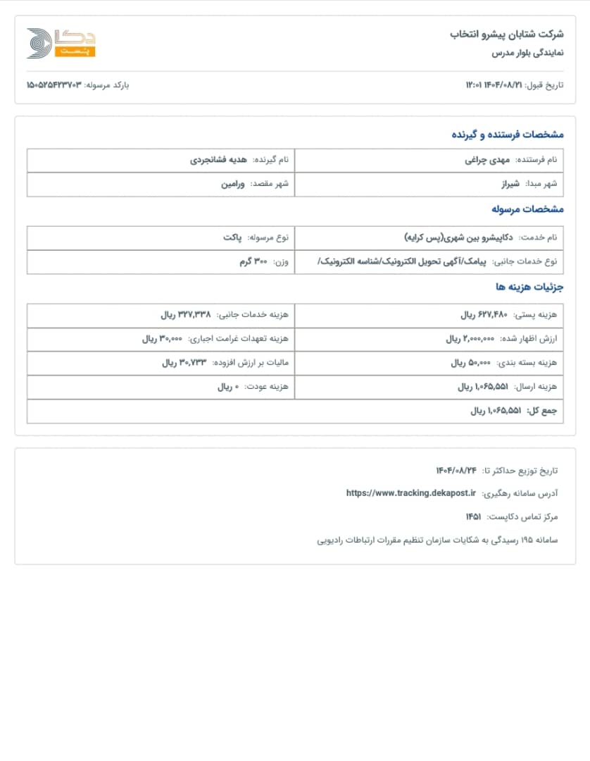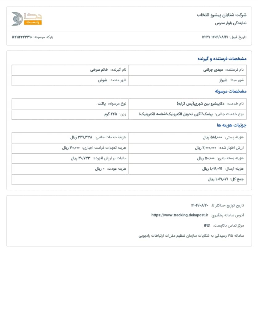 کد رهگیری سفارشات شما