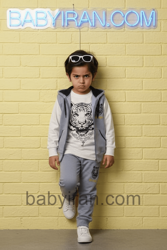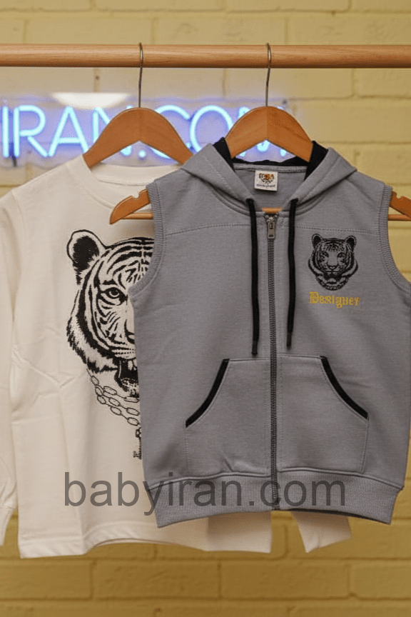 ست لباس پسرانه شیک سهتکه (هودی، شلوار اسلش و تیشرت) طرح ببر – مناسب سن 2 تا ۷ سال