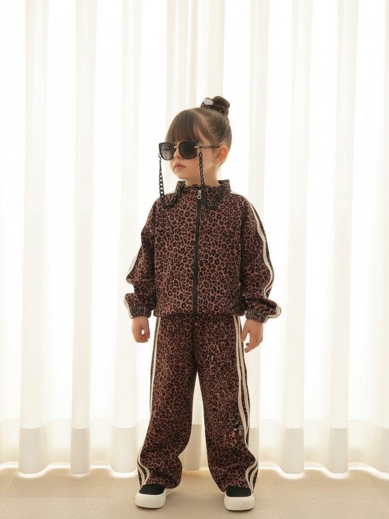 ست سوییشرت شلوار پلنگی دخترانه مناسب 2 تا 13 سال/ بامپر جکت دخترانه