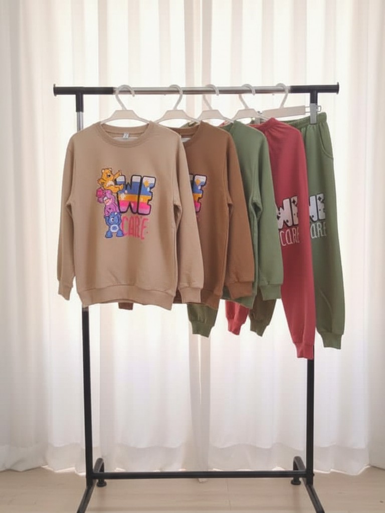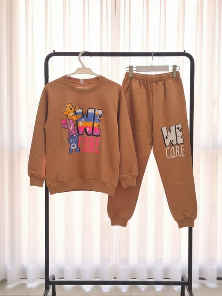 ست بلوز و شلوار پسرانه اسپرت طرح خرس کارتونی | پنبه کبریتی نرم در سه رنگ سبز، قهوهای و زرد